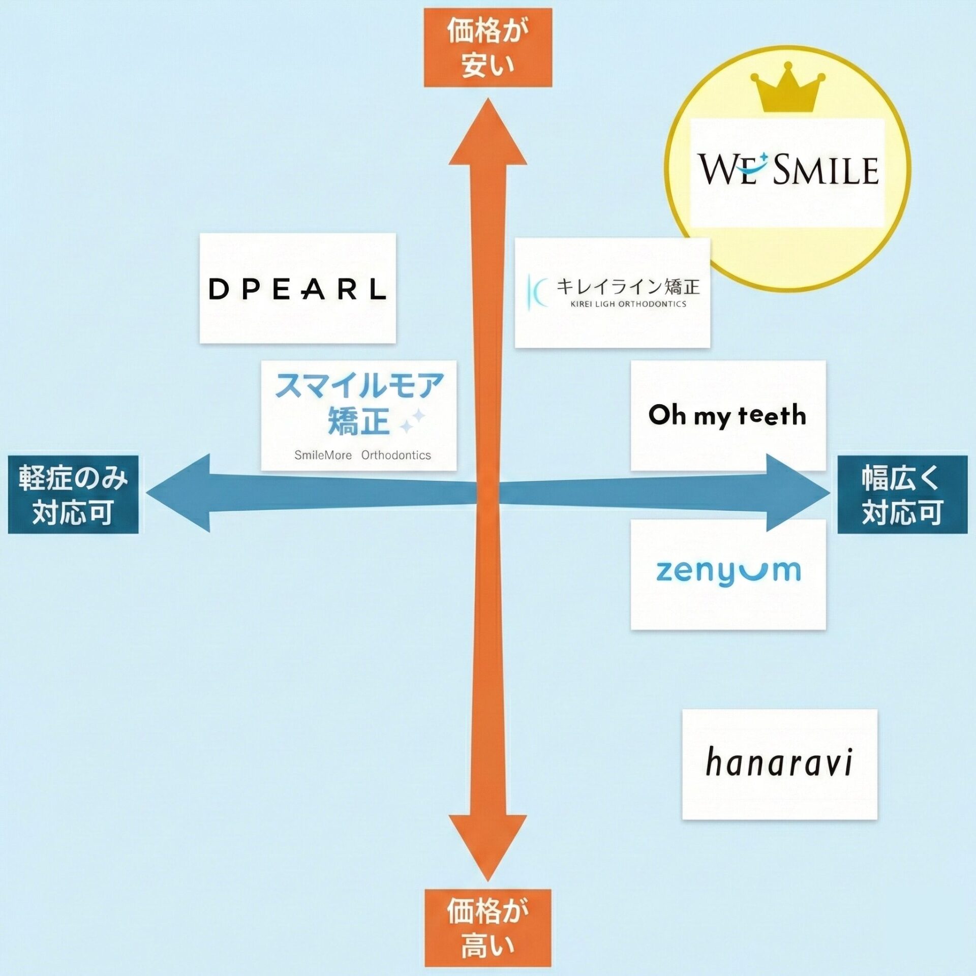 マウスピース矯正は、ワイヤー矯正より材料や人的費用が安価のため、価格が安い傾向にあります。